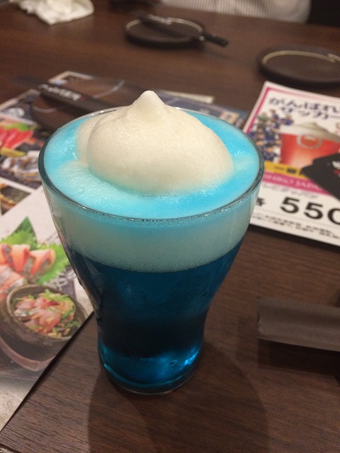 シロップで青くしているあま~いビールだったそうで、「普通のビールが一番・・・」とのこと(笑)