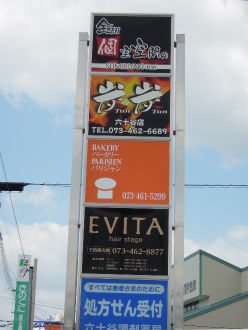 上から炭火焼鳥 炭炭、ベーカリーパリジャン、美容室EVITA、六十谷調剤薬局(敬称略)
