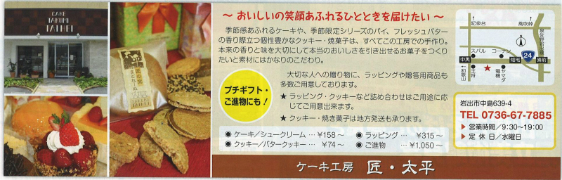 岩出市中島にある当社のテナント「グリーンプラザ中島」に、ご入居中のケーキ工房 匠・太平さんに、インタビューに行ってきました!