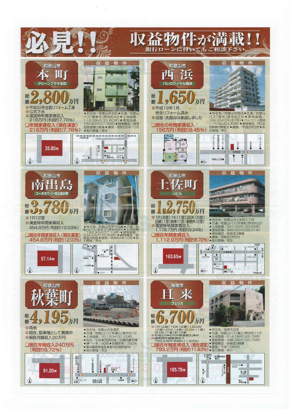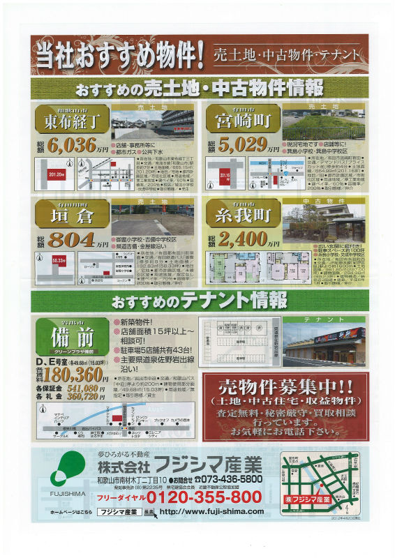 和歌山テナントナビを運営するフジシマ産業の売物件情報収益物件情報