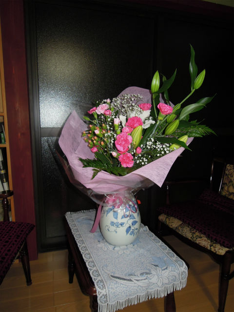 母に手渡した後、ばーちゃんに謎の花瓶に生けられた花束の図・・・(笑)