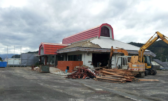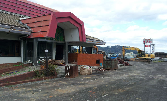 有田市辻堂、国道42号線沿いの(元)来々軒を解体工事中です。