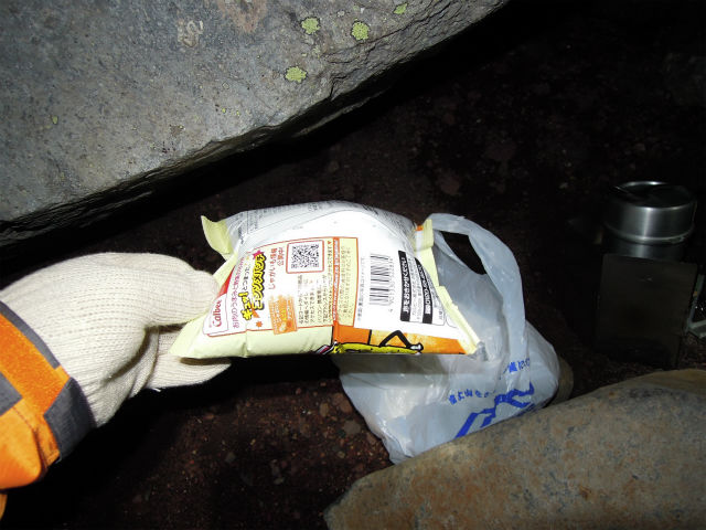 私のポテチ(60g)は7合目にてザックに詰める際に破裂しリタイア・・・