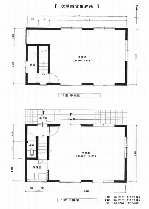 2階の事務所は窓の間に壁があり(南北に)2室に分かれてます。
