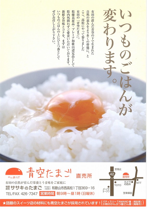 ササキの卵さん♪和歌山市西高松、カメラの西本さんの北側の喫茶店跡の物件を改装されて卵の販売をしています!