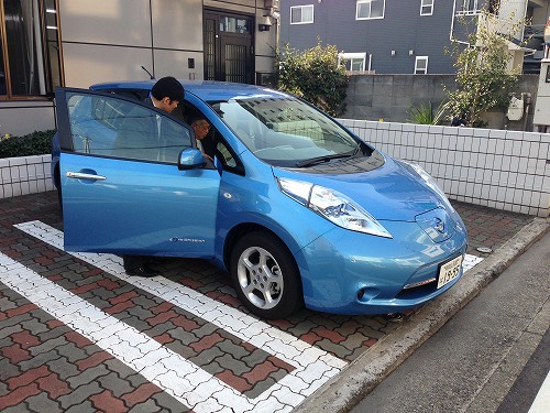 と言う事で岡本さんが日産自動車でリーフを借りてきました。