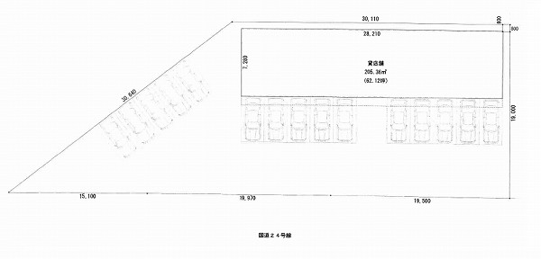 現在の計画では、建物面積205.36㎡(62.12坪) 間口28.21m×奥行7.28mの建物を単独店舗として建築予定!