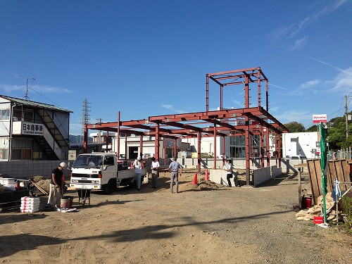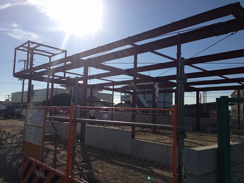 和歌山市鳴神、宮街道沿いで新築工事中の店舗の棟上げでした!