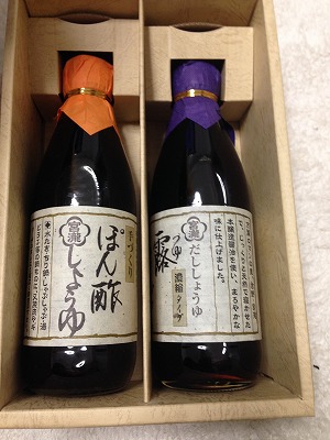 景品にもらった醤油とポン酢がおいしそうだ♪