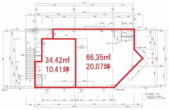東側(国体道路側):66.35㎡(20.07坪) 月額賃料&共益費&消費税(5%)=231,808円