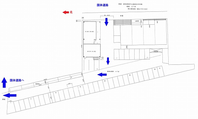 国体道路沿い(右側)が約20坪、駐車場側(左側)が約10坪です!