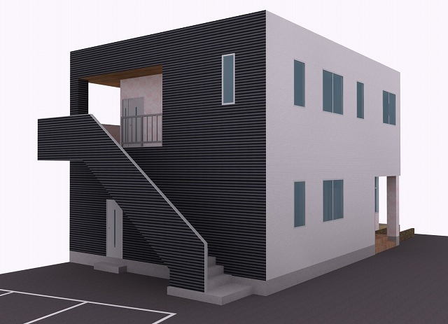2階は事務所仕様の内装付きで、裏から階段で上がる感じです!