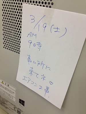 事務所のエアコンが壊れたので、取り換え工事をしてもらうのに営業していない土曜日で・・・という事だったので誰が出てくるか?と