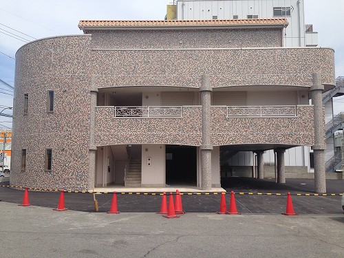柱に貼ってるタイルと合わせたくて、外壁も同じデザインで特注されたそうです!